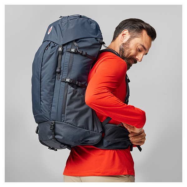 キャリーシステムは、軽量で安定性が高く、人間工学に基づいて設計されたショルダーストラップとサポート力のあるヒップベルトによって非常に快適です。アルミのフレームとメッシュパネルのバックパネルは理想的な通気性を実現します。軽量ながらも丈夫な210デニールのリップストップナイロン(リサイクルナイロン)を主素材に採用しています。