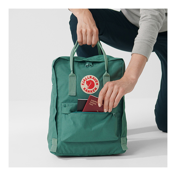 「Kanken」はスウェーデン語で「持ち運ぶ」という意味を持ち、リュック・手提げとして2WAYで活躍。摩耗性、耐久性、耐水性の高いビニロン素材を使用しています。